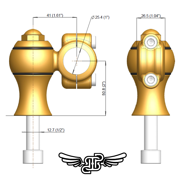 Bolt to upper tree with supplied 1/2″ UNC bolts